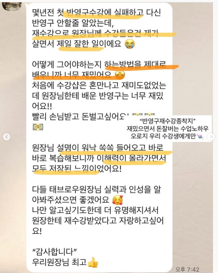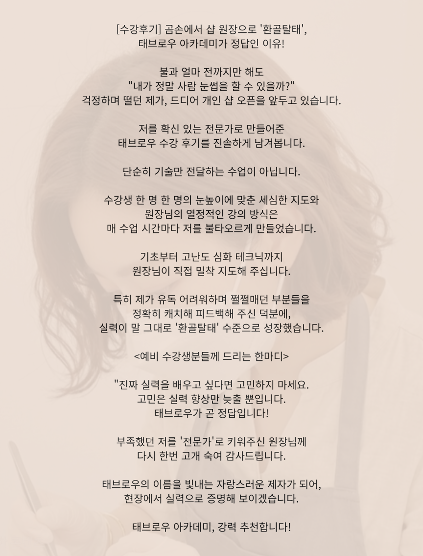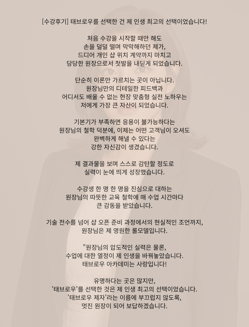 태브로우에서 수강한 수강생들의 실제 후기를 확인해보세요!